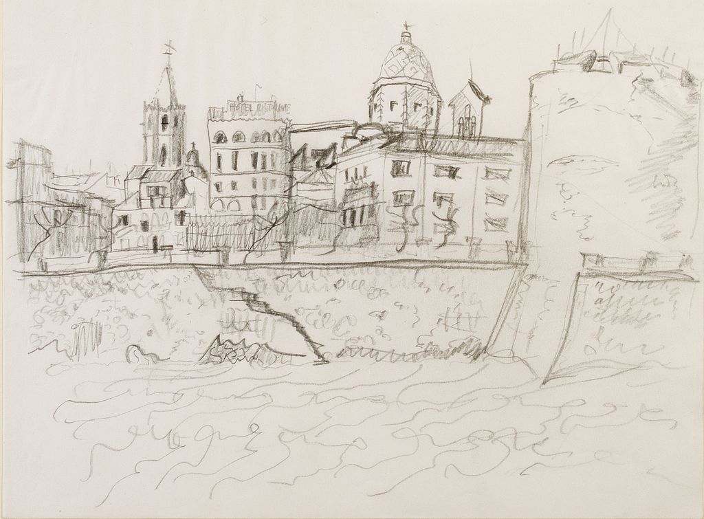 Blick auf die Promenade am Meer mit San Francesco und San Michele, Alghero